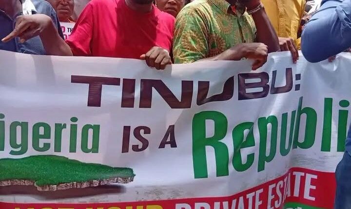 Sun riƙa ɗaga kwalaye masu rubuce-rubuce irin su “INEC ba ta siyarwa ba ce” da “Amupitan ya riga ya lalace,” a cewar rahotanni daga wurin.
